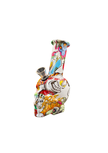 This vibrant skull-shaped bong features a unique graffiti-inspired design that combines colorful artwork with a playful, edgy aesthetic. Made from high-quality glass, it includes a clear bowl for easy loading and a comfortable mouthpiece for smooth hits. Perfect for cannabis enthusiasts looking to add a striking piece to their collection, this bong not only serves functionality but also acts as a bold statement piece.