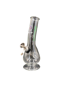 A classic glass water pipe with a beaker base, featuring a colorful skull design and a metal bowl attachment. Simple, sturdy, and perfect for smooth sessions.