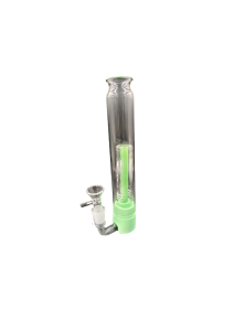 A sleek glass water pipe with a silicone base and percolator, featuring a clear detachable bowl for smooth filtration. Stylish and functional for a refined smoking experience.